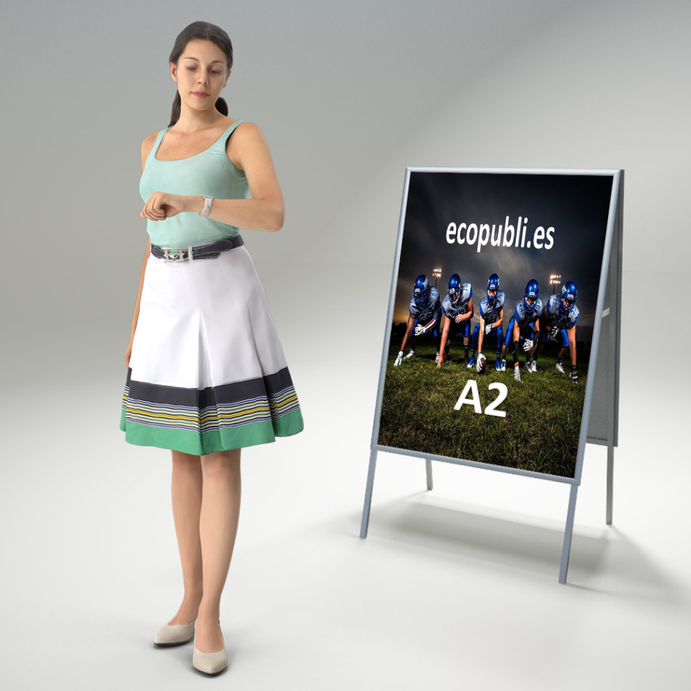 Atril Córdoba A2. Un Atril para exteriores e interiores, color plata oscuro y fondo de acero. Ofrece siempre una gran estabilidad. Su marco se abre fácilmente para el intercambio de los carteles de formato A2 y tiene el fondo de Acero. Nuestros Atriles están creados para dar estabilidad y un servicio perfecto para tu publicidad. Para mayores cantidades puedes pedir presupuesto a tienda@ecopubli.es