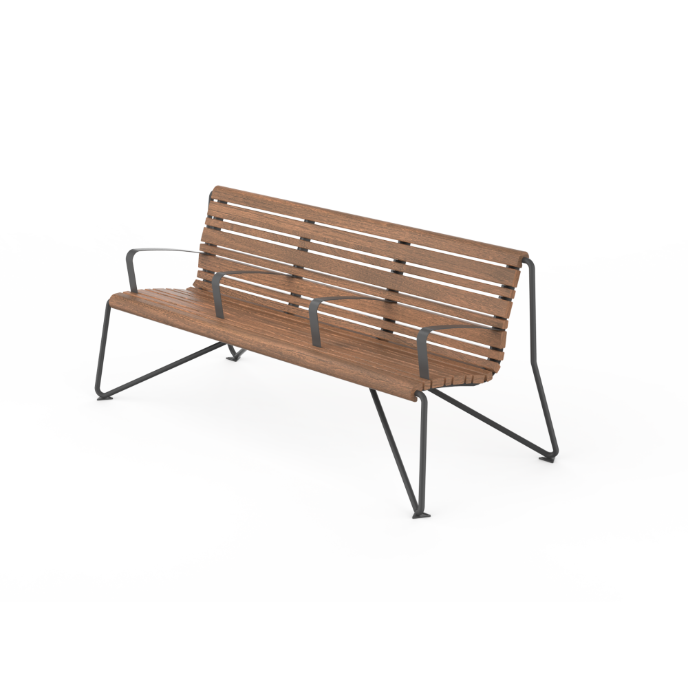 Banco PSMLWW12901B.Banco con respaldo y reposabrazos laterales y don interiores, de 175 cm de ancho con un asiento de madera y estructura de acero. La delicadeza óptica de la estructura y la sencilla forma de este banco garantizan la posibilidad de integrarlos en espacios de cualquier tipo, desde un parque hasta una moderna plaza de ciudad. La estructura original de un tubo delgado de paredes gruesas da a este banco ligereza, manteniendo la estabilidad y la fuerza. Ver acabados en Ficha Técnica en el apartado de adjuntos.Para cualquier consulta contactar con nosotros por correo electrónico en tienda@ecopubli.es