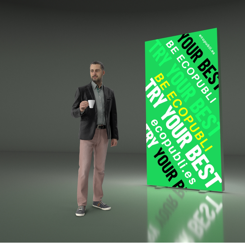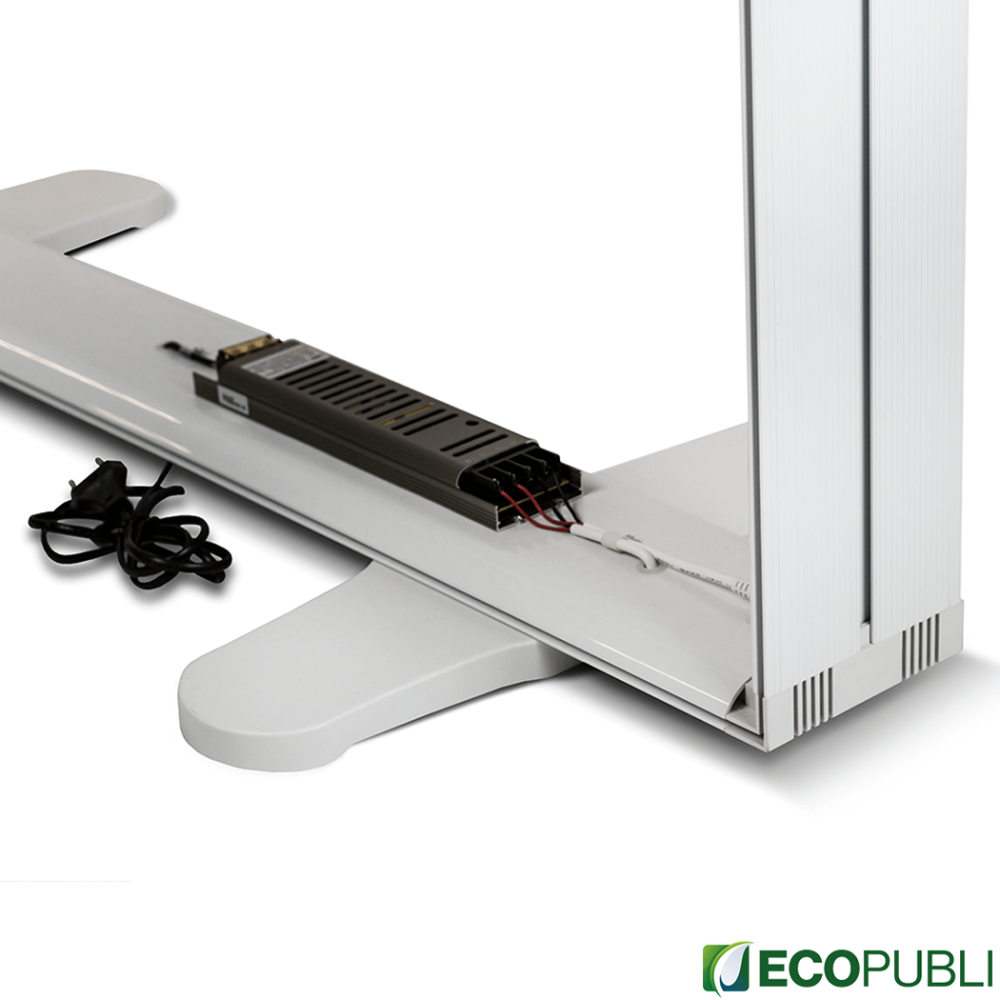Banner Textil Lumiled F. Un Banner Textil LED en Medidas 100 X 200 cm, y Grosor de 12 cm, con impresión en sublimación a dos caras. Ideal para cualquier acción de marketing y campañas publicitarias. Se sirve en caja de cartón reforzada. Para mayores cantidades puedes pedir presupuesto a tienda@ecopubli.es