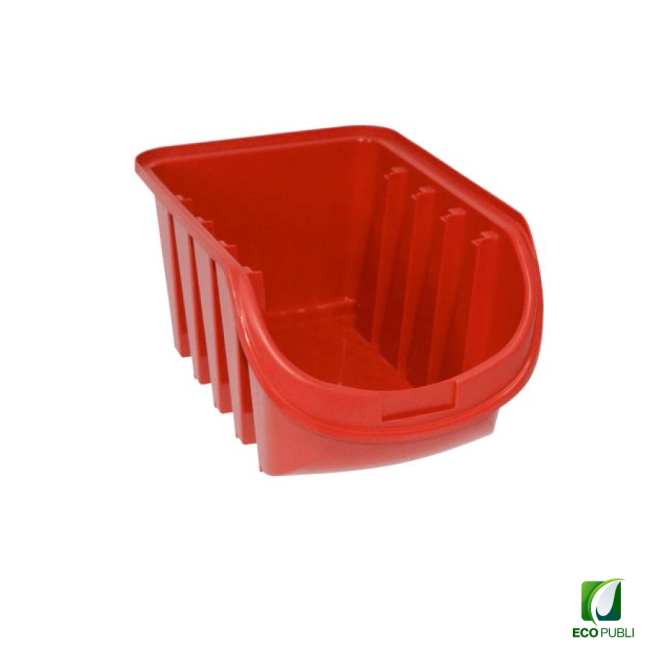 - Gaveta Ecopubli de 3 litros de capacidad sin tapa y color Rojo.