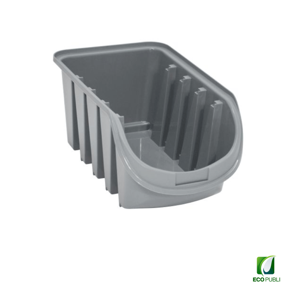 - Gaveta Ecopubli de 7 litros de capacidad sin tapa y color gris.