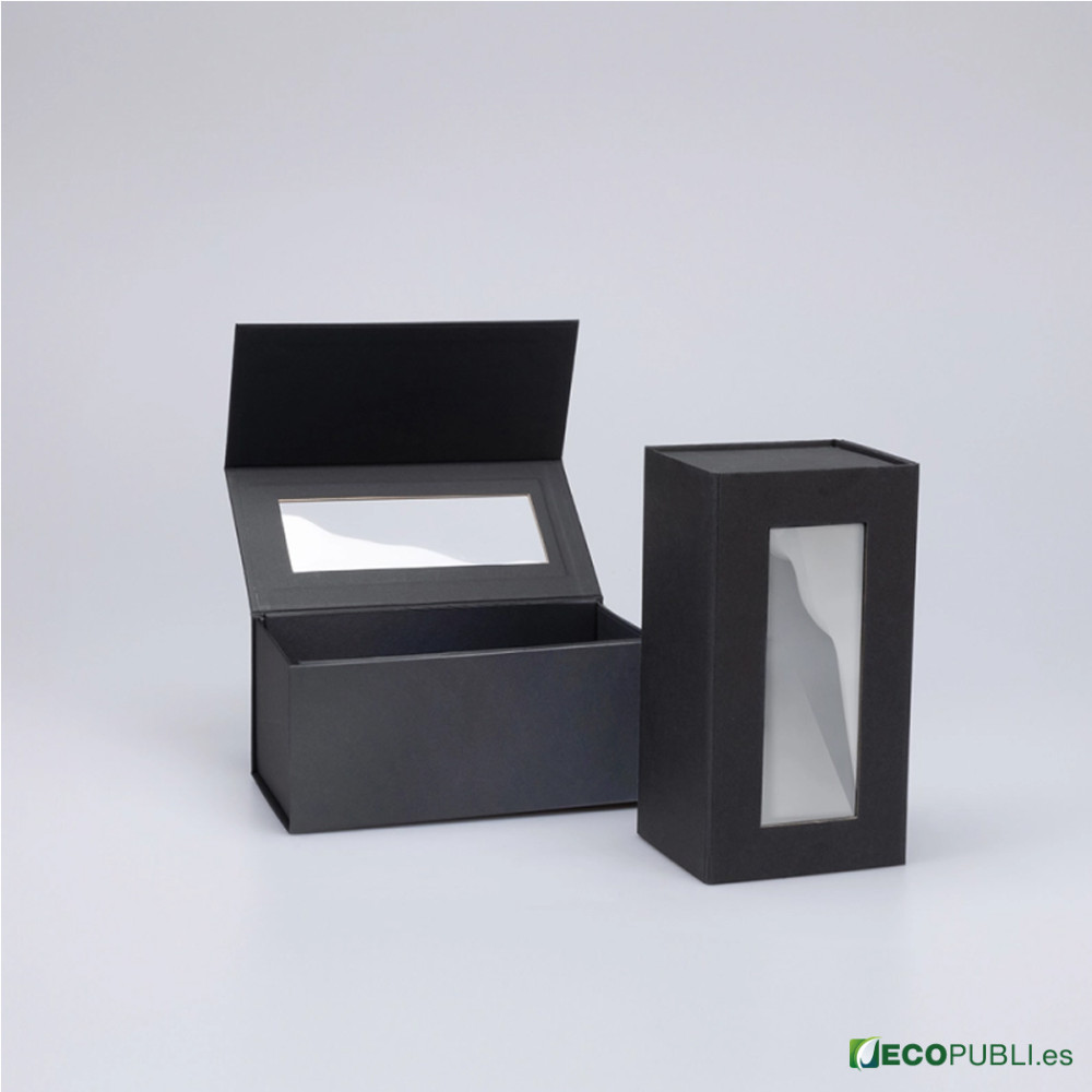 - Ventana en la tapa, de diferentes medidas, para que el producto quede a la vista del cliente.