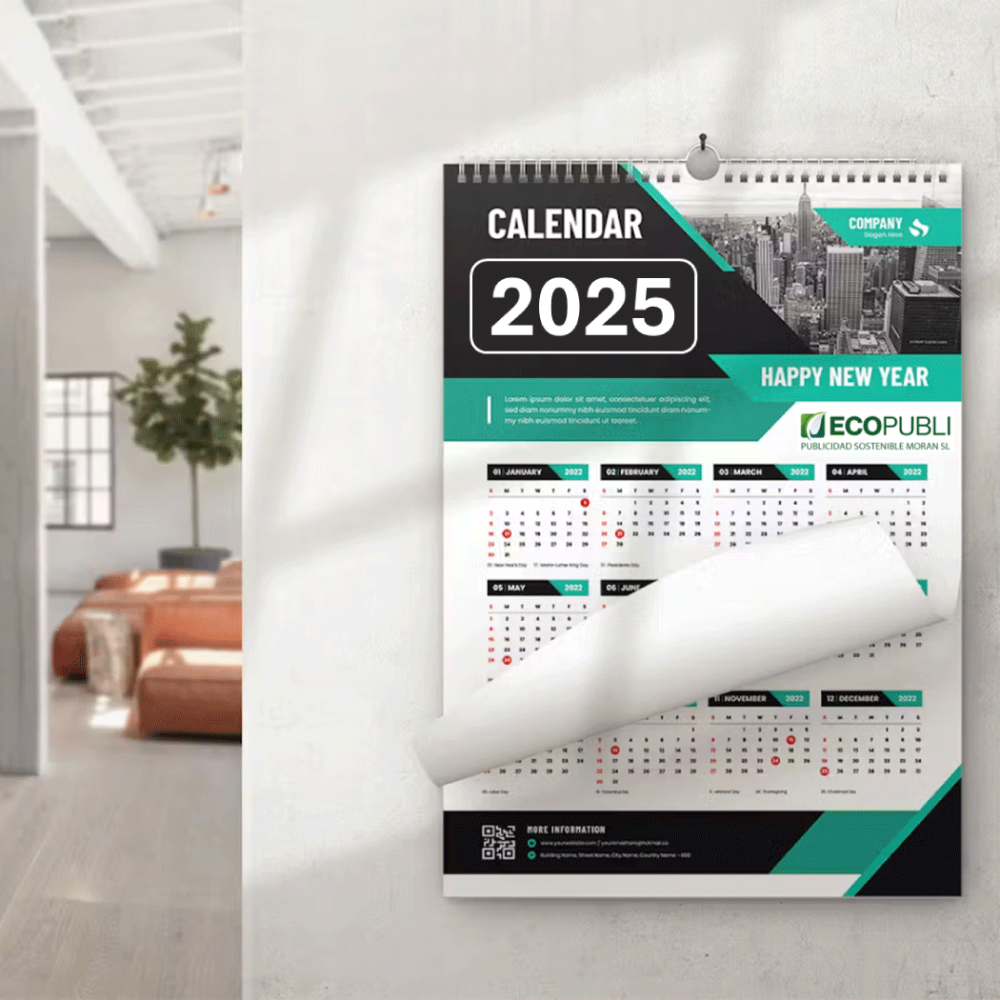 Calendario de Pared A4 13 Hojas y Cuelgafacil. Sostenible PEFC.
