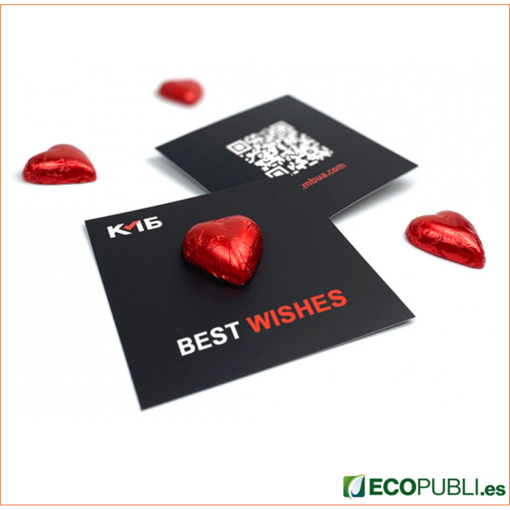 Postal con corazón de chocolate.