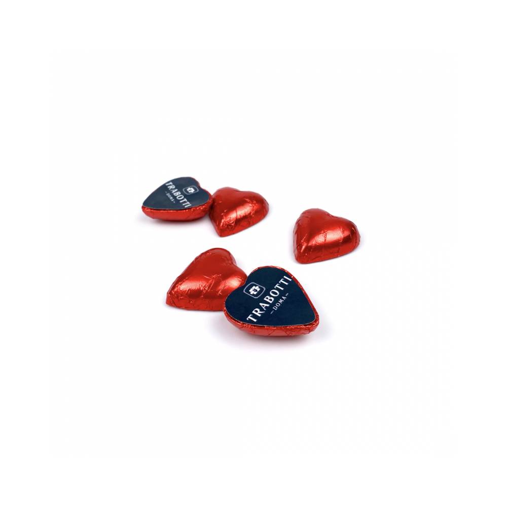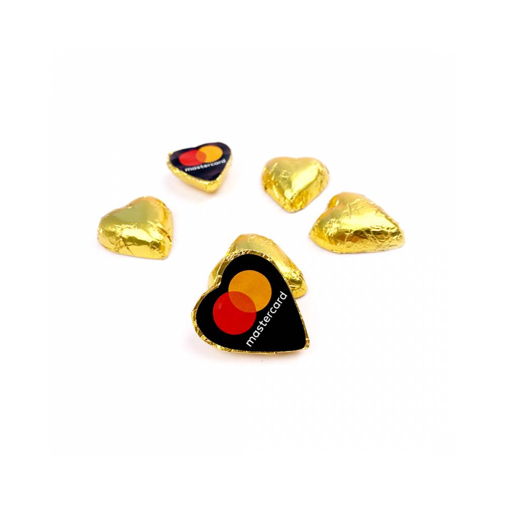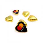 El corazón de chocolate con logo 7 g es un artículo promocional que destaca. Para tener éxito en una exposición o cualquier otro evento promocional, necesitas algo que llame la atención del cliente. Y los caramelos de marca con logo son perfectos: no ocupan mucho espacio y son fáciles de colocar en un soporte y regalar. Además, esta es una excelente opción para que las recepciones atiendan a los clientes mientras esperan. Nuestros corazones de chocolate con logo de 7 g se pueden personalizar según su marca y diseñarse según el estilo y la combinación de colores de la empresa de forma gratuita. Coloque un logotipo impreso a todo color y cualquier otra información en un envoltorio autoadhesivo. El color metalizado es el rojo noble, un excelente fondo para un logotipo de cualquier gama de colores y que enfatiza favorablemente su estilo corporativo. Los caramelos están elaborados con un 33% de chocolate con leche, una opción ideal para los amantes del sabor suave y cremoso.