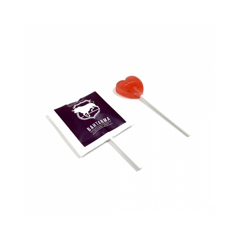 La impresión a todo color hace que el envoltorio se adapte a su estilo corporativo. Proporcione sus materiales y desarrollaremos el diseño de forma gratuita. Puede pedir piruletas de marca "Corazón" con un logo con sabores de frutas y bayas de su elección.
