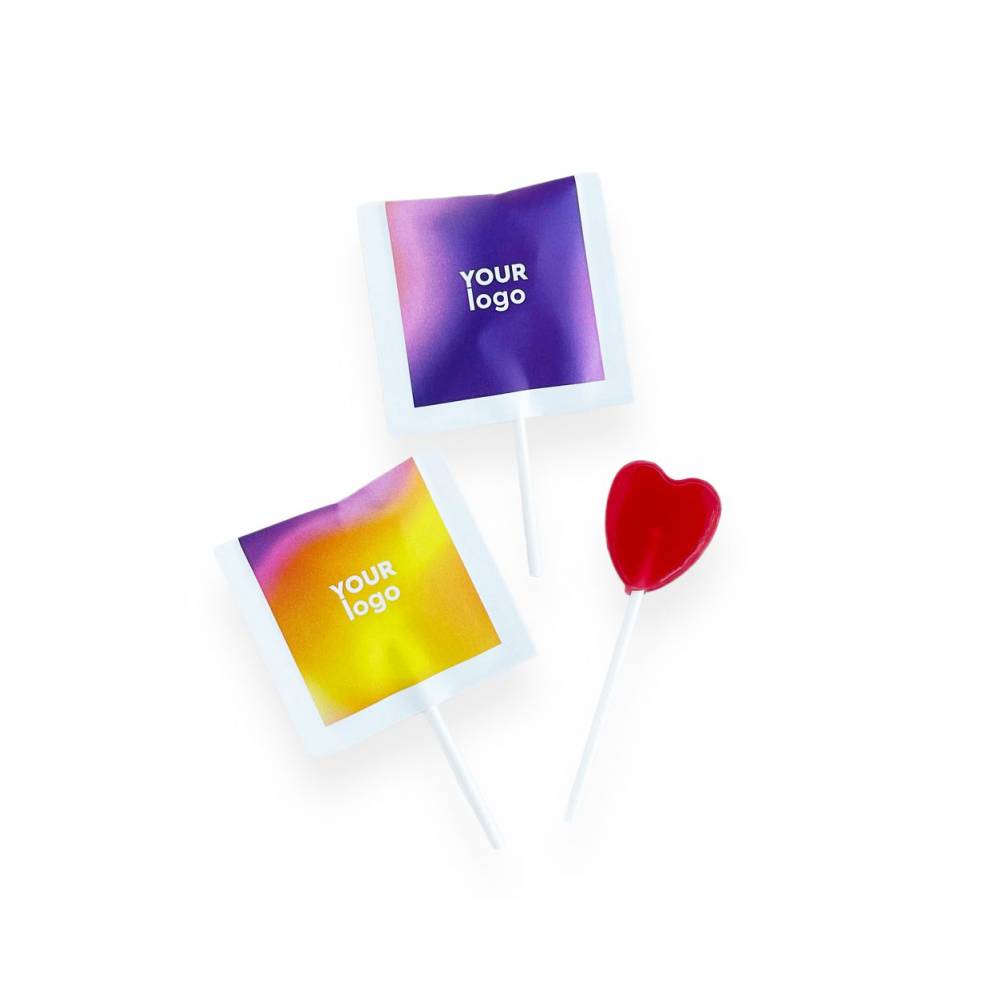 Pide ahora tus piruletas de corazón y empieza a repartir felicidad con tu marca.