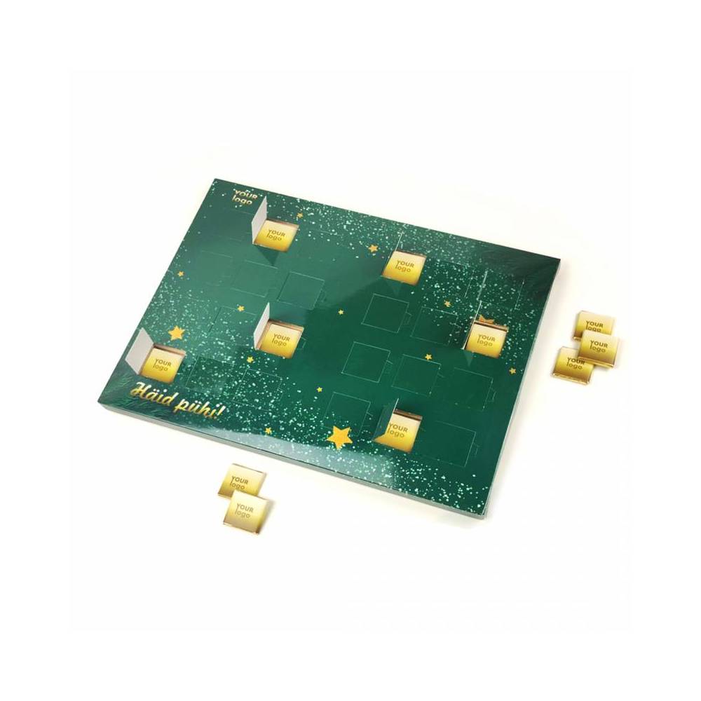 Según la tradición, el calendario de Adviento es una postal gigante con ventanas que se abren con chocolate en cada una. Muestra el tiempo que queda hasta Navidad. Este set de chocolate "Calendario de Adviento" de 120 g, decorado al estilo de su empresa, hace que la espera de las vacaciones de Año Nuevo sea aún más mágica. Los calendarios de Adviento se han vuelto tan populares que se los regalan absolutamente a todo el mundo. Se trata de un original regalo dulce prenavideño para los empleados de la empresa. Este souvenir también se puede regalar a clientes o socios comerciales como regalo corporativo. Ofrecemos impresión a todo color de su logotipo y diseño gratuito de un juego de chocolates "Calendario de Adviento" de 120 g. Con tu logo y tus deseos crearemos un regalo original que todos recordarán. Aumentará la fidelidad de los empleados y pasará a formar parte de una campaña publicitaria eficaz. Ofrecemos elegir entre juegos de chocolate "Calendario de Adviento" de 120 g de dos sabores clásicos: chocolate con leche delicado y chocolate negro amargo. La cantidad mínima de pedido de cajas es de 50 unidades.