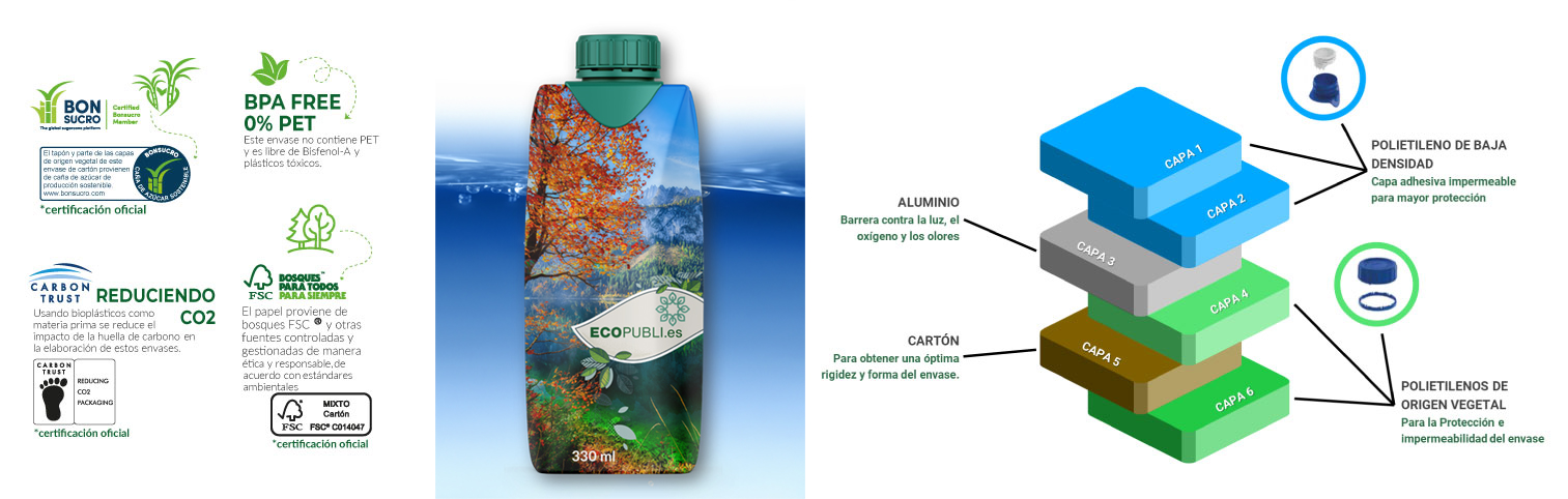 Brik de Agua envasada en cartón sostenible un buen vehículo de comunicación DISEÑAMOS TU ENVASE al 100%.