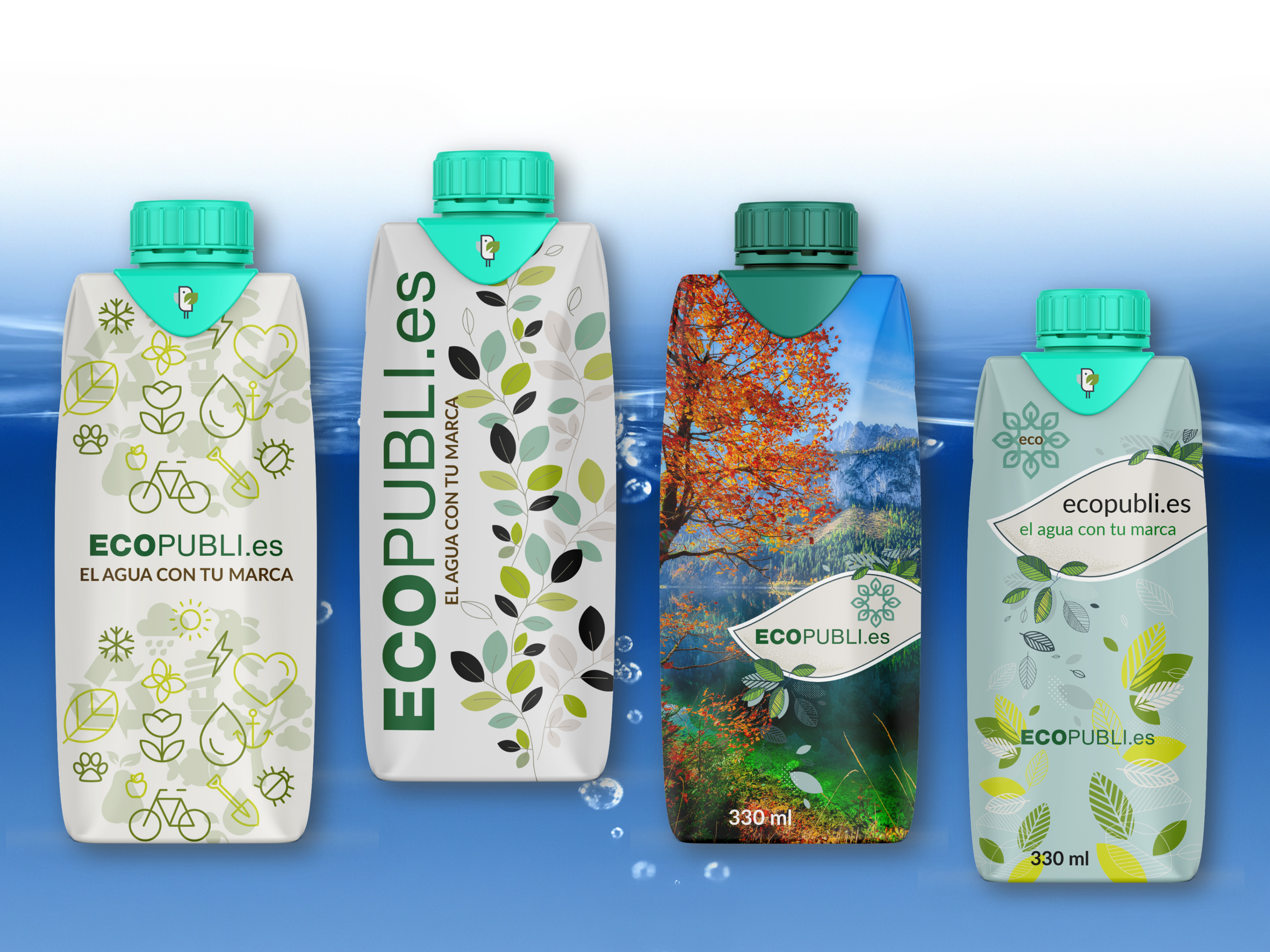Construye una reputación sostenible con el agua personalizada en brick de Ecopubli. Nos encargamos de todo el proceso diseño y producción del envase de agua con tu marca, desde la personalización del envase; tapón, caja, formato… hasta el envío a cualquier punto del mundo.