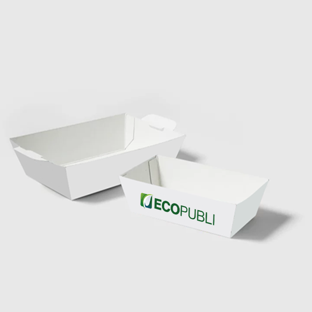 Bandeja Refrigerios fabricadas con Cartón Alimentario 350 g/m². Si tenemos que elegir una Bandeja para Refrigerios con alta calidad y sostenible, seguramente elegiríamos este producto de Ecopubli.