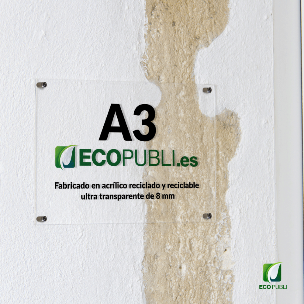 - Fabricado en acrílico reciclado y reciclable ultra transparente de 8 mm.