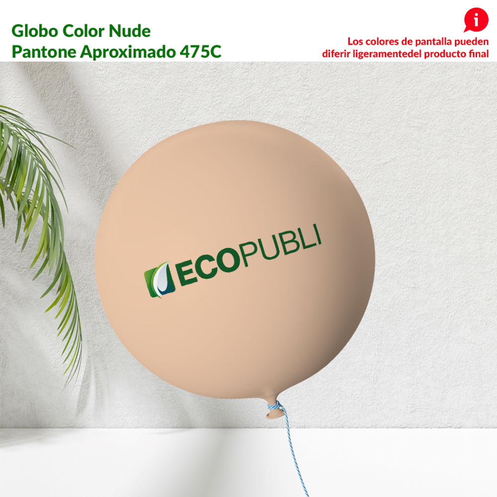 Globo Publicitario Nude. Diámetro 91 cm y Contorno de 286 cm. En Ecopubli estamos decididos a potenciar la sostenibilidad con productos publicitarios ecológicos. Por eso nuestros Globos Publicitarios son todos Biodegradables. Disponemos una amplia gama de colores por cada formato, para que puedas seleccionar el que más te guste, siempre con la garantía de Ecopubli. Para cualquier consulta contactar con nosotros por correo electrónico en tienda@ecopubli.es