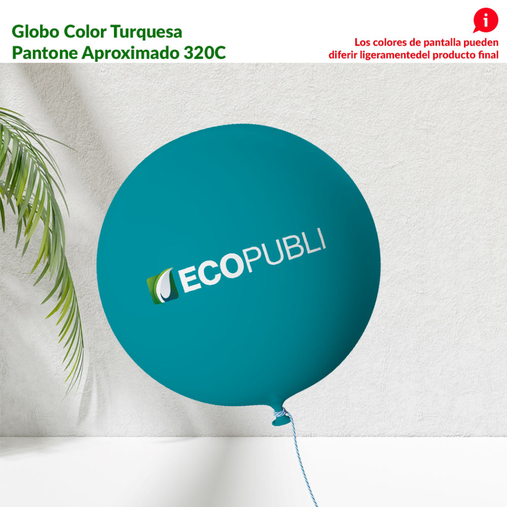Globo Publicitario Turquesa. Diámetro 91 cm y Contorno de 286 cm. En Ecopubli estamos decididos a potenciar la sostenibilidad con productos publicitarios ecológicos. Por eso nuestros Globos Publicitarios son todos Biodegradables. Disponemos una amplia gama de colores por cada formato, para que puedas seleccionar el que más te guste, siempre con la garantía de Ecopubli. Para cualquier consulta contactar con nosotros por correo electrónico en tienda@ecopubli.es