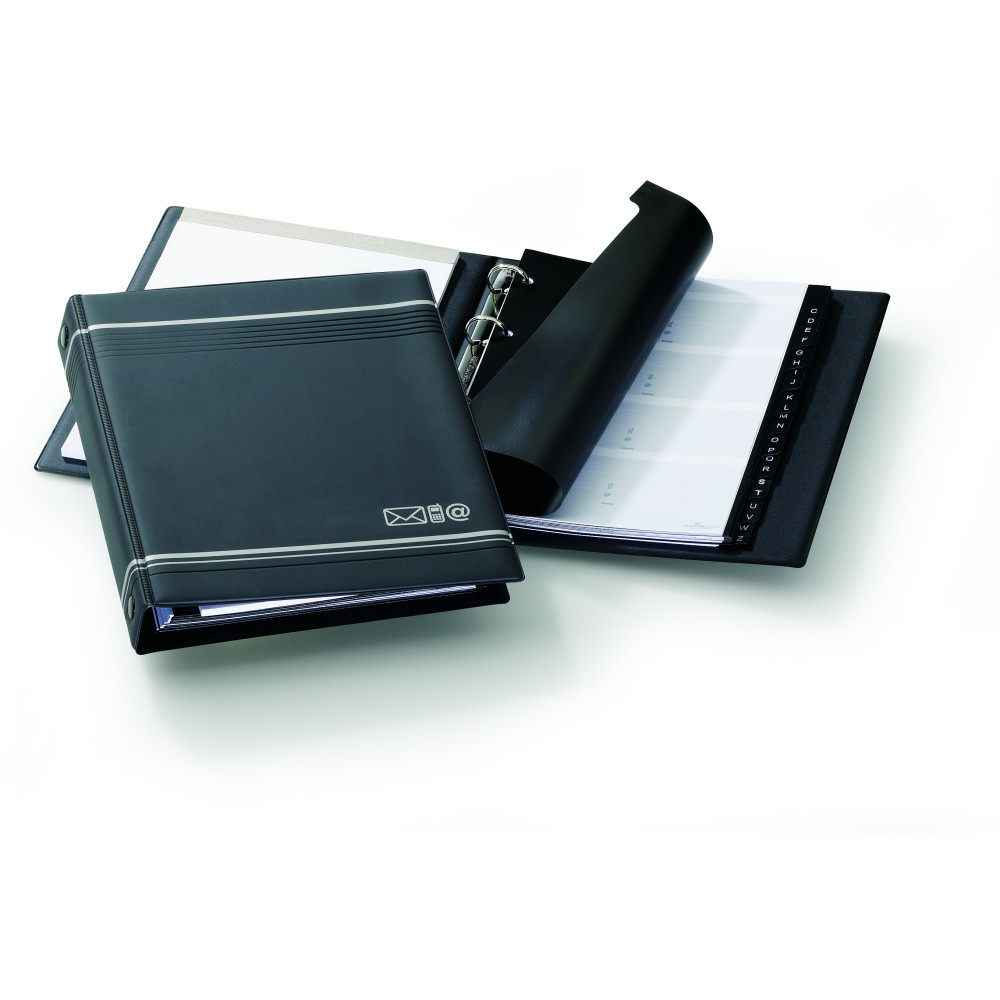 - Agenda telefónica de Anillas A5 con superficie mate y tiras decorativas en Color plata
