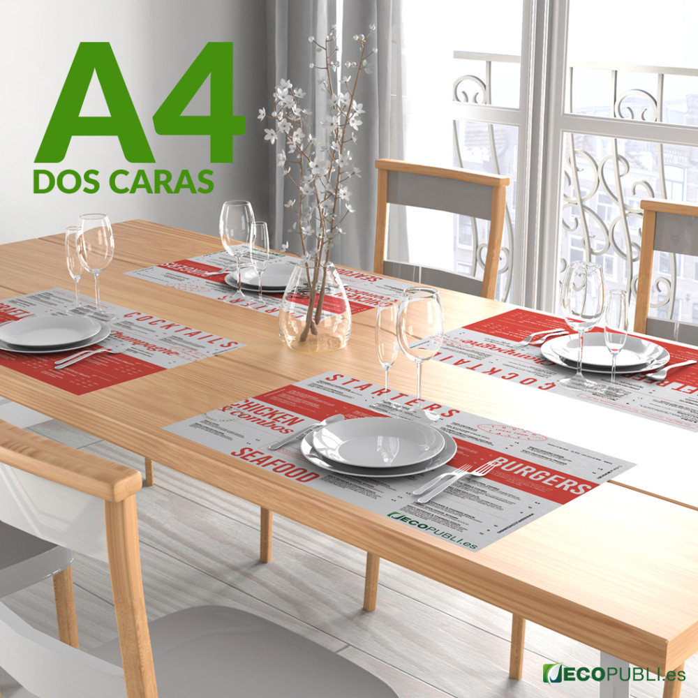 Manteles de papel A4 personalizados con impresión a doble cara