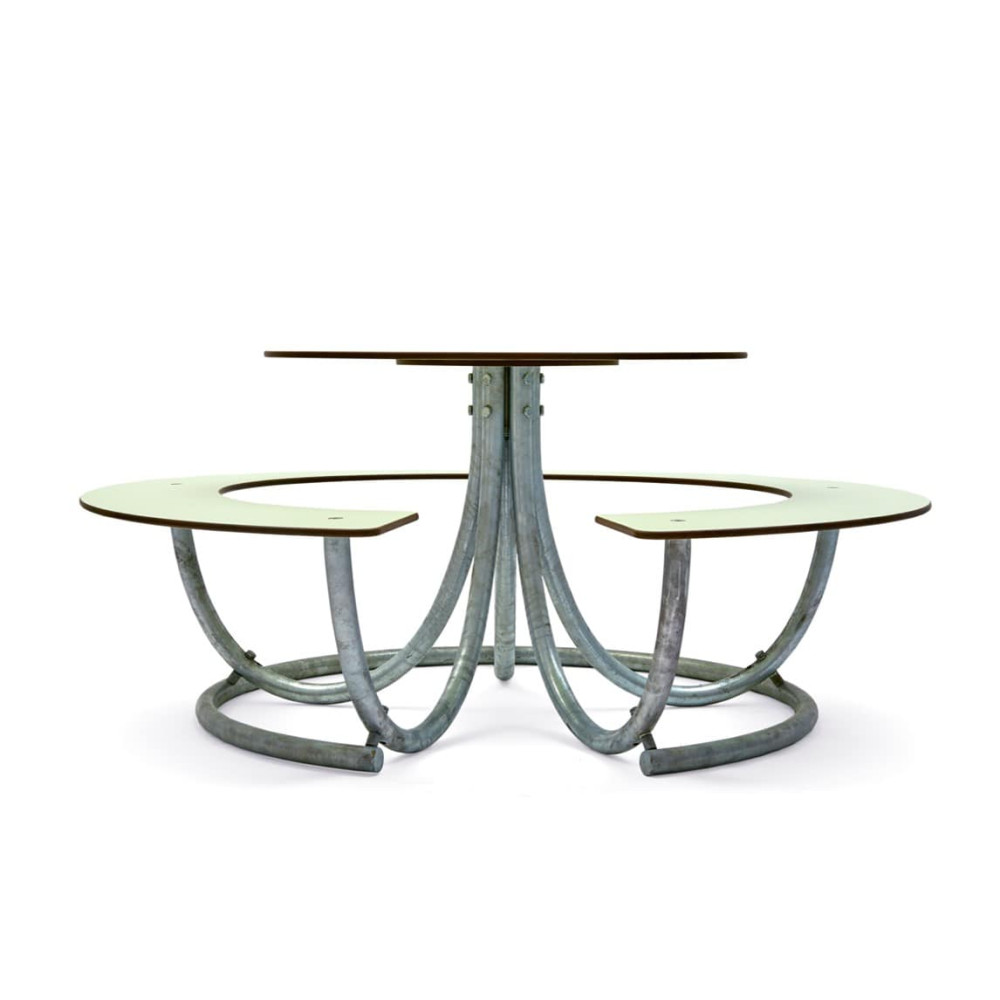 - Squid es una mesa diseñada para su uso en espacios exteriores, jardines de infancia, guarderías o escuelas.