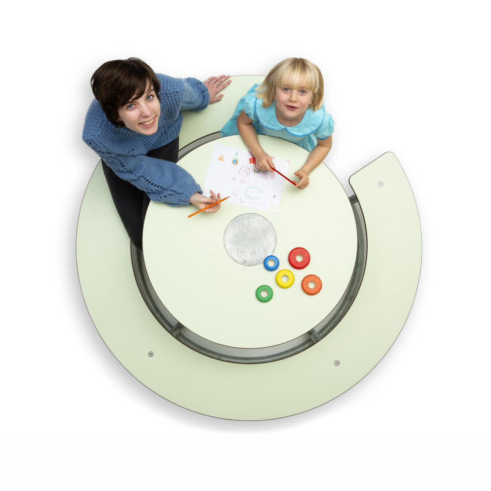 - La mesa se sostiene firmemente sobre sus patas inspiradas en las de un pulpo, y es estable incluso cuando los niños gatean sobre ella.