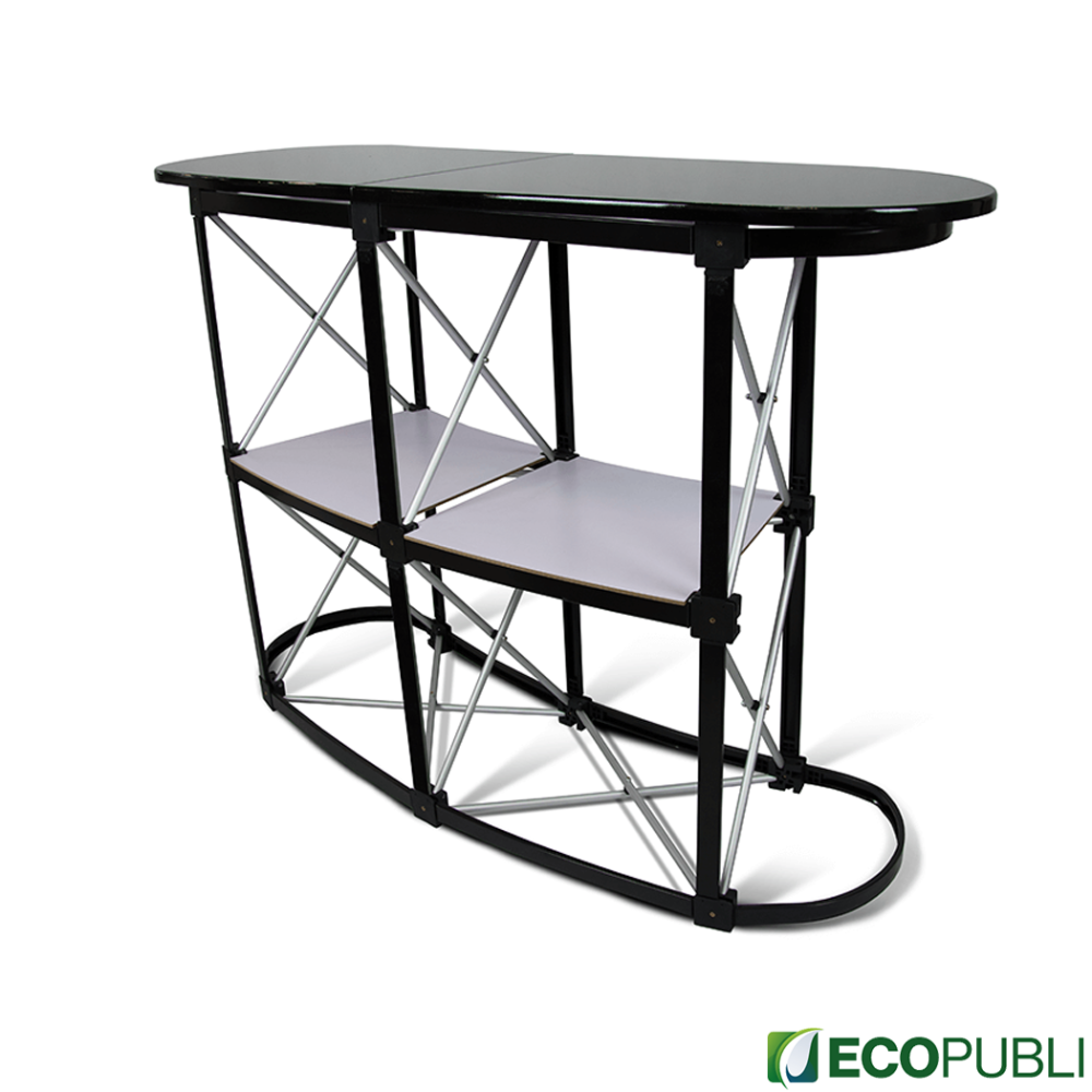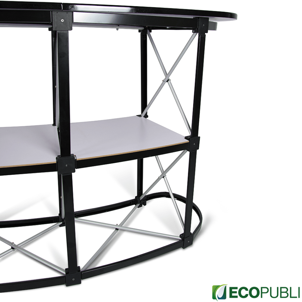 Nuestros mostradores están creados para para complementar tu stand en cualquier forma y con diferentes tamaños y terminaciones. Su montaje es muy sencillo y rápido. Es un sistema muy resistente y es ideal para cada feria y evento al que tengas que acudir.