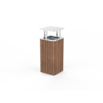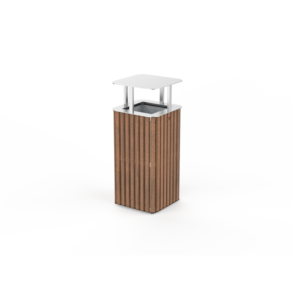 Papelera PSMKLI10700. Papelera fabricada en acero y madera. Este modelo tiene un techo, un inserto de acero galvanizado con una capacidad de 65 litros y una cerradura del sistema. Esta línea de productos se caracteriza por una estructura estable y un diseño sutil, así como por un funcionamiento rápido y económico. Ver acabados en Ficha Técnica en el apartado de adjuntos.Para cualquier consulta contactar con nosotros por correo electrónico en tienda@ecopubli.es