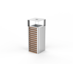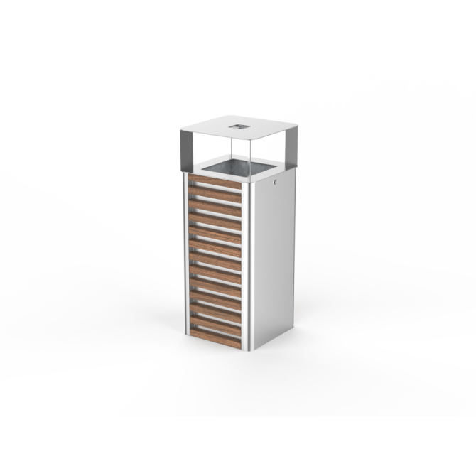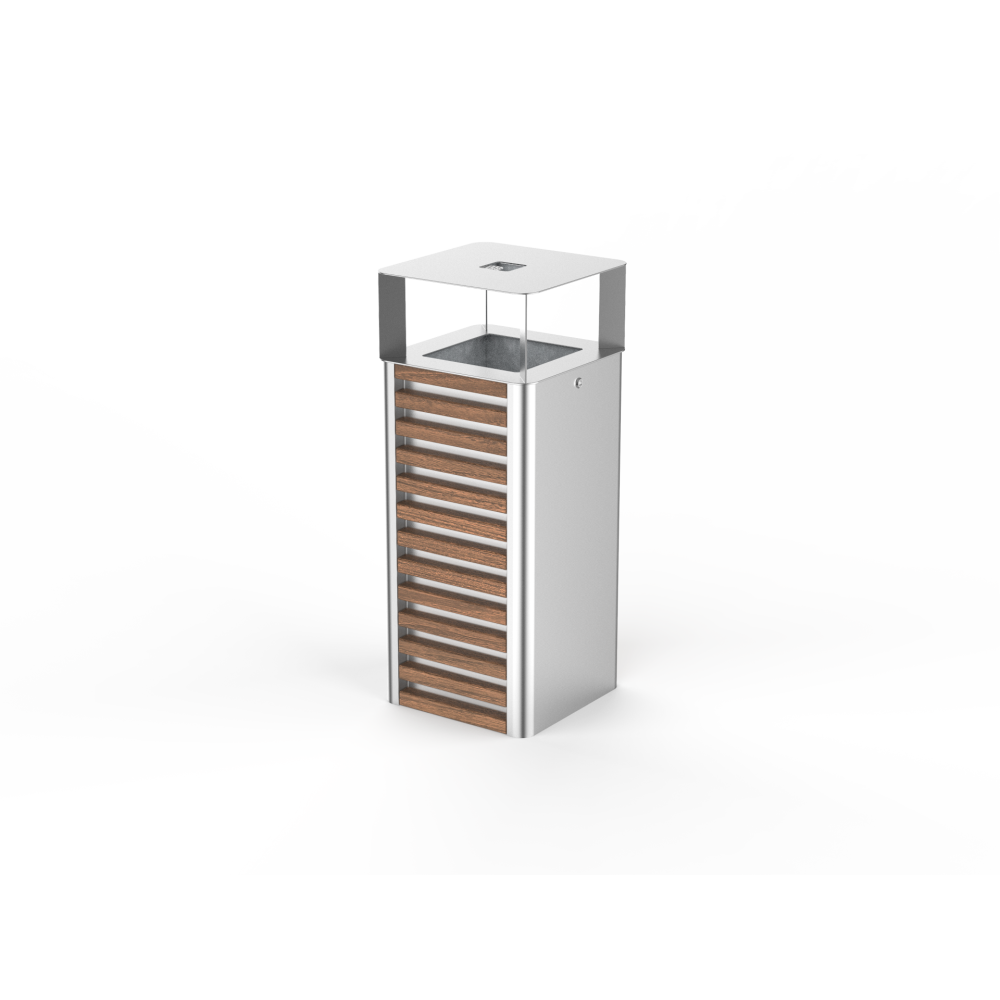 Papelera PSMKTR02201. Papelera cuadrada fabricada madera y acero. Tiene un techo con un cenicero, un inserto de acero galvanizado con una capacidad de 55 litros y una cerradura del sistema. Este modelo se distingue por su aspecto y ergonomía única. Redefine el espacio, dándole un carácter representativo y amigable al mismo tiempo. Ver acabados en Ficha Técnica en el apartado de adjuntos.Para cualquier consulta contactar con nosotros por correo electrónico en tienda@ecopubli.es