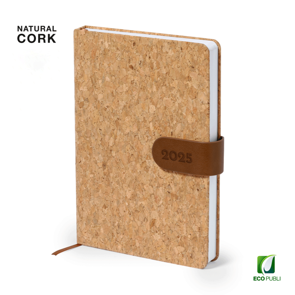 - Agenda de tamaño A5 fabricada en corcho natural.