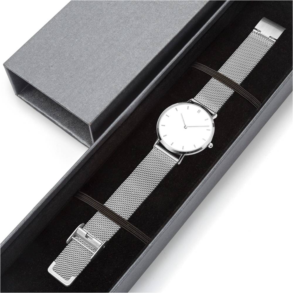 • Estilo moderno, cuerpo ultrafino con una popular estructura de acero inoxidable, proporciona una hora precisa y resistencia al agua de 3 ATM para cualquier ocasión.