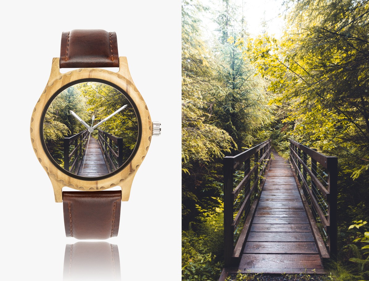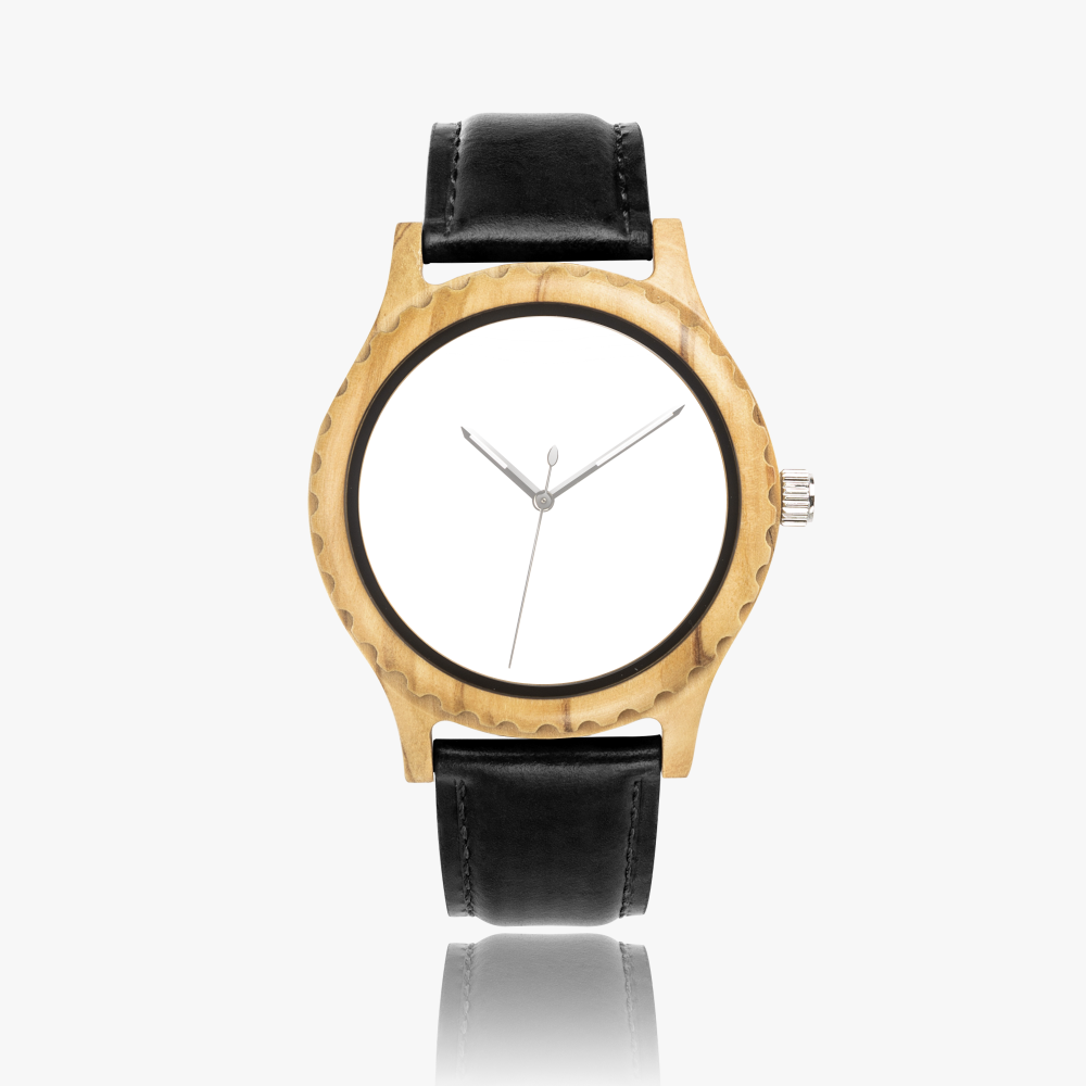 Reloj de Madera de Olivo Italiano con Correa de Cuero – Personalízalo con tu Imagen