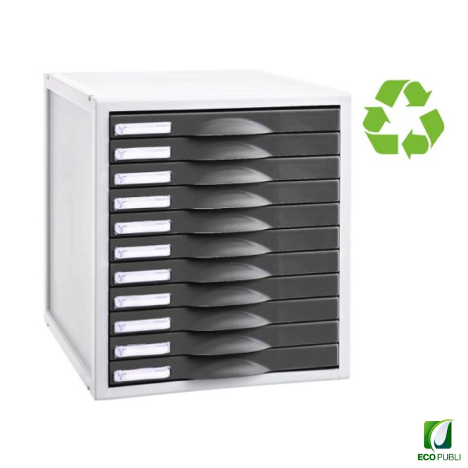 - Sistema de organización modular sostenible de 11 cajones de 22 mm.