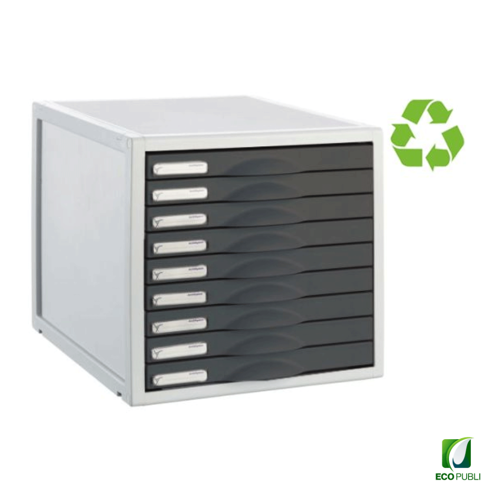 - Sistema de organización modular sostenible de 9 cajones de 22 mm.