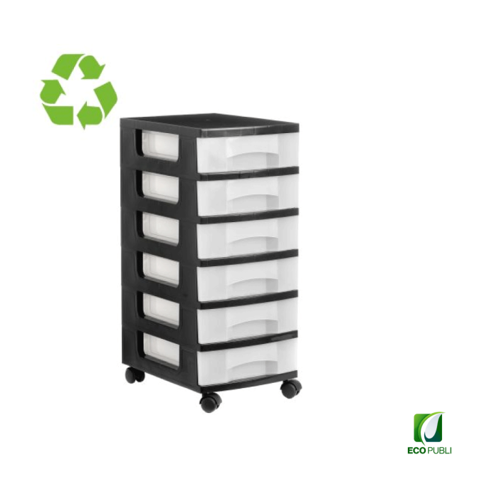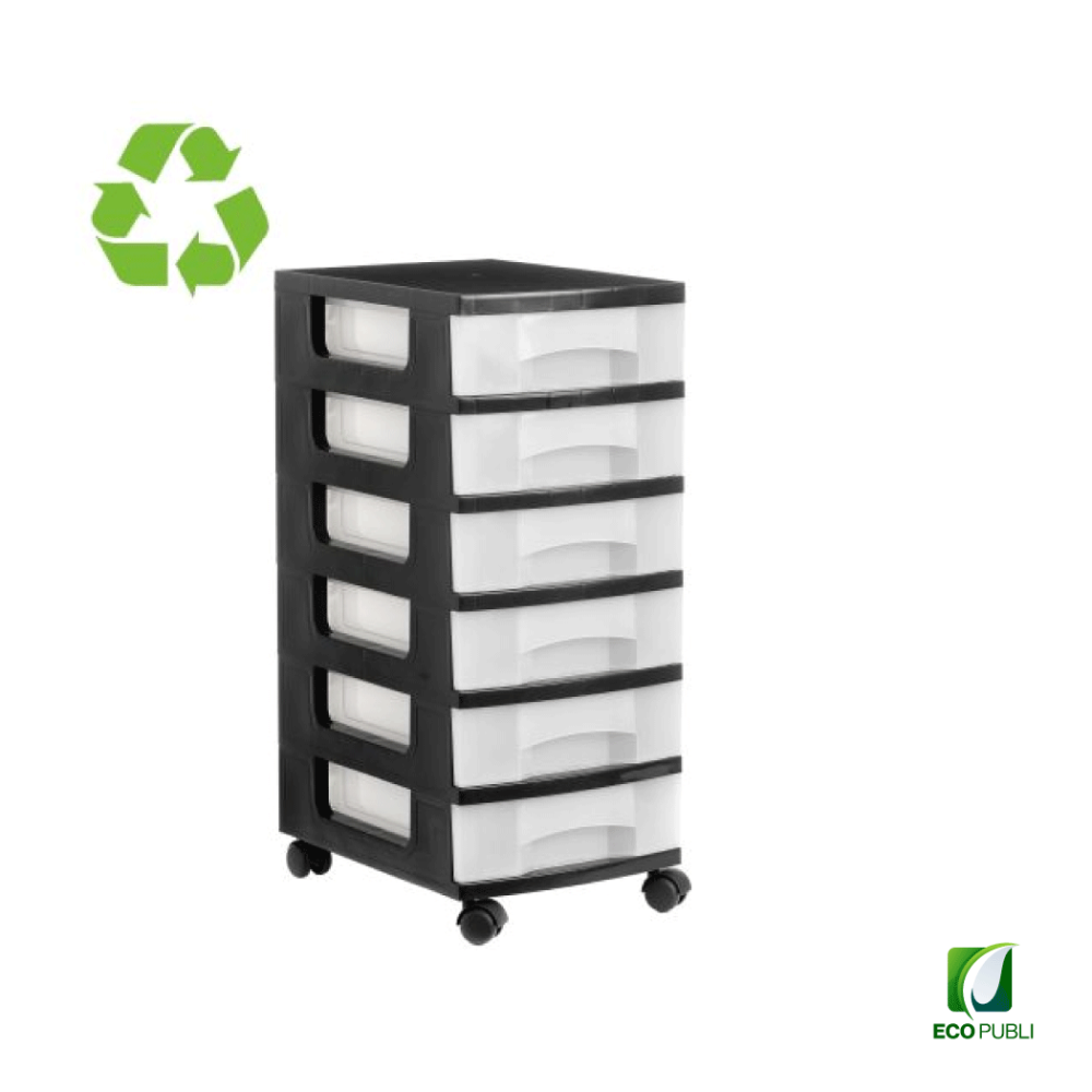 - Torre de almacenaje sostenible Ecopubli con 6 cajones de 6 litros con ruedas.