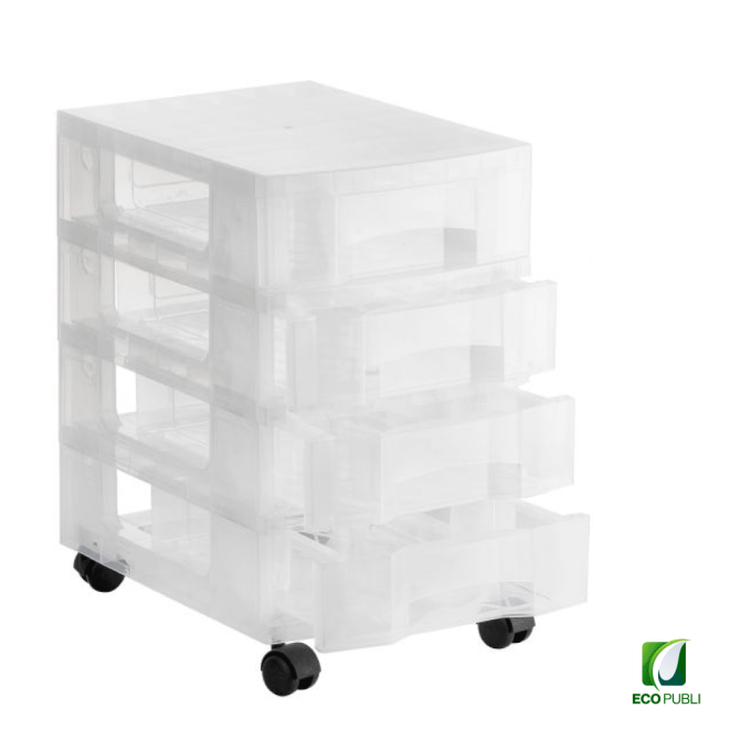 - Torre de almacenaje Ecopubli con 4 cajones de 6 litros con ruedas.