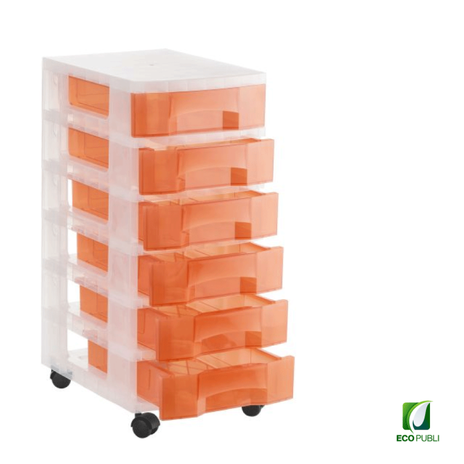 - Torre de almacenaje Ecopubli con 6 cajones de 6 litros con ruedas.