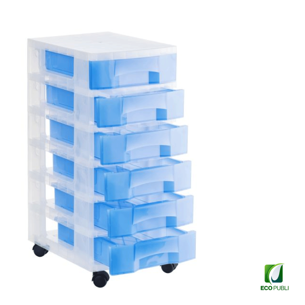 - Torre de almacenaje Ecopubli con 6 cajones de 6 litros con ruedas.