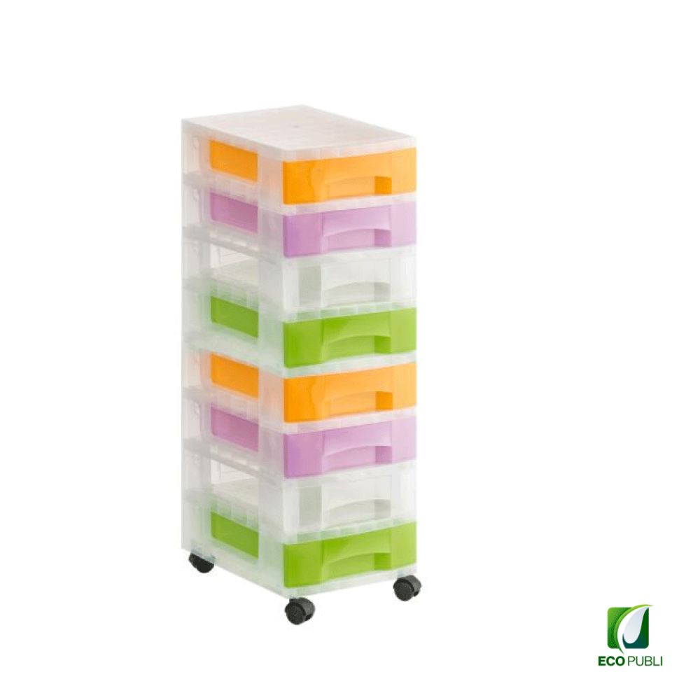 - Torre de almacenaje Ecopubli con 8 cajones de 6 litros con ruedas.