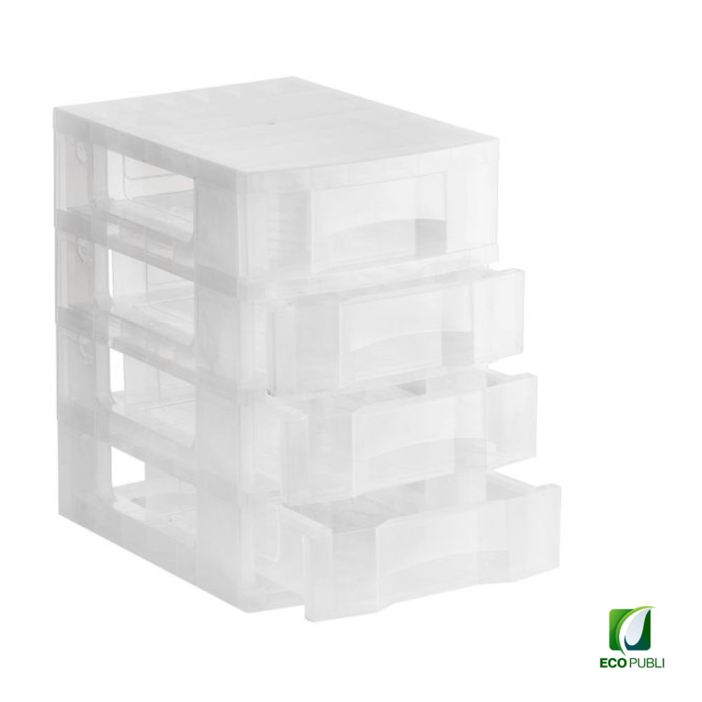 - Torre de almacenaje Ecopubli con 4 cajones de 6 litros con ruedas.