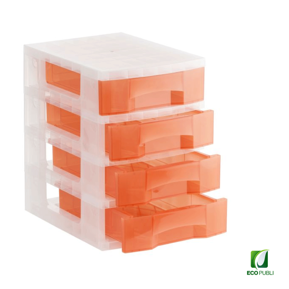 - Torre de almacenaje Ecopubli con 4 cajones de 6 litros con ruedas.