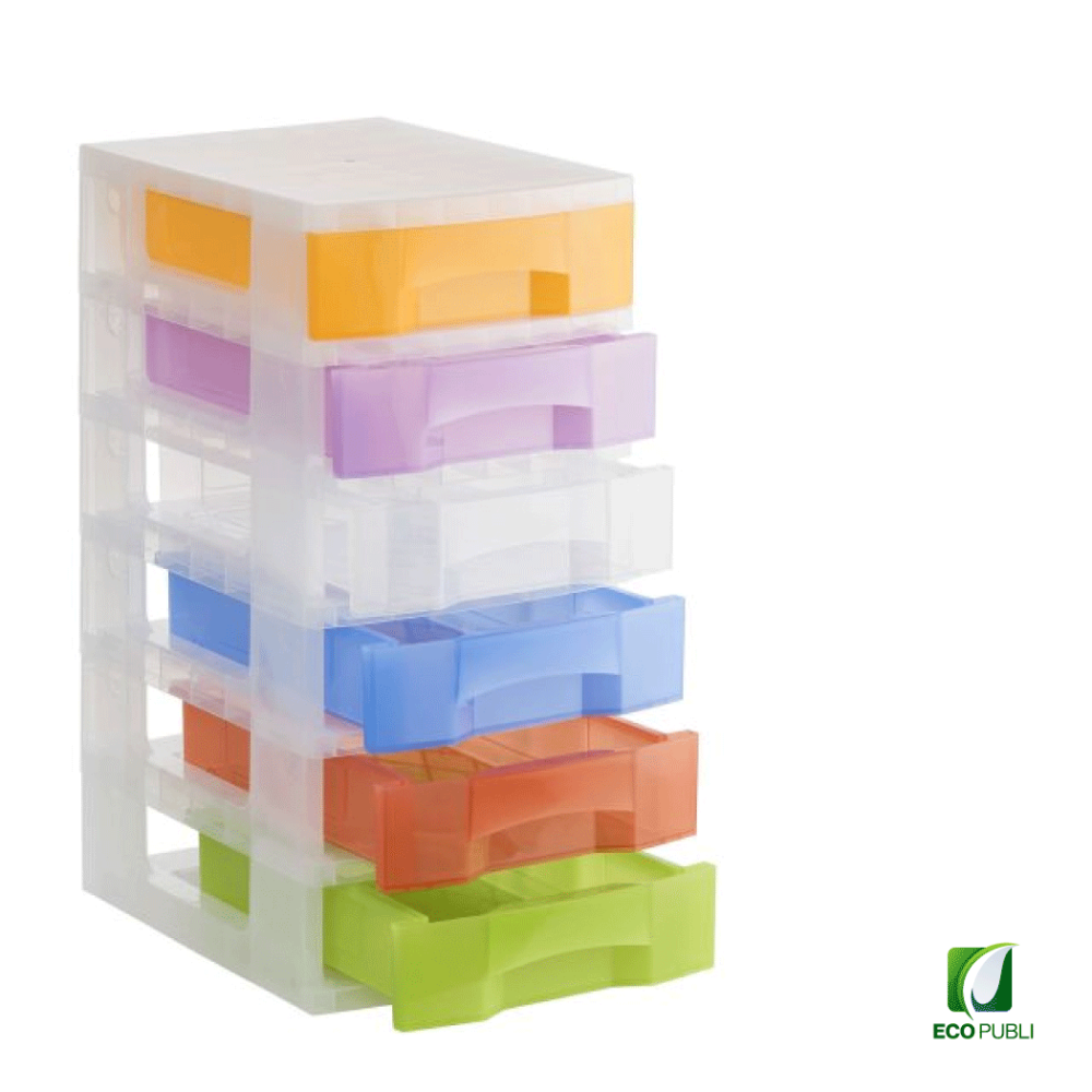- Torre de almacenaje Ecopubli con 6 cajones de 6 litros con ruedas.