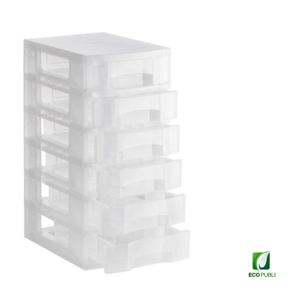 - Torre de almacenaje Ecopubli con 6 cajones de 6 litros con ruedas.